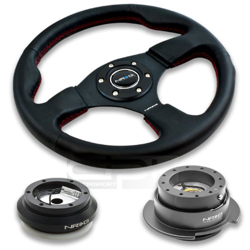 Features100% brand new, Never Been Tried or Installed12.5" / 320mm Black Leather with Red Stitching; ST-012RShort Hub Adapter; Direct Bolt-on Design, Perfectly fits Any Wheel with a 6-Bolt Standard Design; SRK-110H. Please go to the NRG Website for Detail Application of the Hub AdapterNRG Brand Quick Release Generation 2.5; Ball Bearing Mechanism; SRK-250GMWill Require the Removal of Special Features from OEM Steering Wheel Such As Cruise Control and Air Bag NRG-SRK-110H+012R+250GM, NRG Innovations 12.5" 320mm Black Leather Red Stitch Button Racing Steering Wheel Combo with 6 Hole Short Hub Adapter with Gen 2.5 Gun Metal Quick Release Kit SRK-110H?