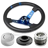 NRG-SRK-E36H+200SL+101LS+016RBL, NRG Innovations 13.78" 350mm 3" Deep Dish Style Black Leather Blue Center Marking Blue Spokes Racing Steering Wheel Combo with 6 Hole Short Hub Adapter with Gen 2.0 Silver Quick Release with Silver Lock Hub Kit SRK-E36H