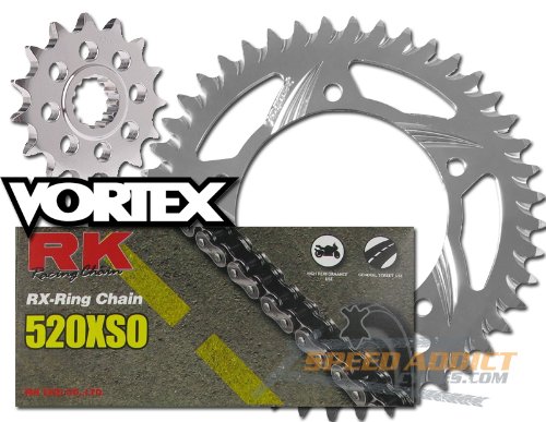 Searching for the best RK Vortex O-Ring Alu QA Chain and Sprocket Kit SV650 99-08 / S 99-07 / SF 08-09; Congratulations! Check the specifications, features and feedback from customer feedback include price controls and information more satisfactory RK Vortex O-Ring Alu QA Chain and Sprocket Kit SV650 99-08 / S 99-07 / SF 08-09 product reviews! Bike's Stock Gearing: 15-45 / 44 Kit's Gearing: 14-45 Notes: 520 Conversion (Stock is 525), Kit contains 1 tooth larger than Stock rear for 01-07 S model. Will not fit ABS models